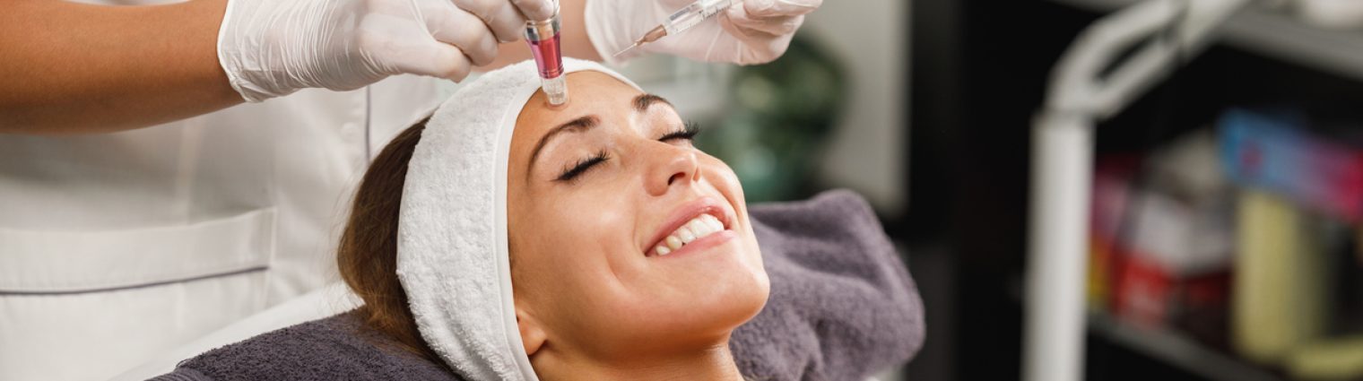 Shot of a beautiful young woman on a facial dermapen micro-needling treatment at the beauty salon.